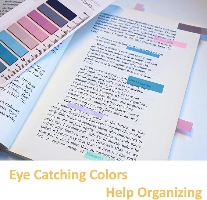 - USAGE OPTIONS: Includes 440 pcs tabs with snug-in bookmark ruler and dispenser, making perfect to carry in university spiral notebooks and use as bookmarking, flagging, and classfication in notebooks, documents, second-hand books and planners
