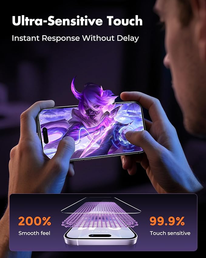 - Clarity & Sensitivity: Our ultra-thin screen protector is 0.01 inches thick, nearly invisible, and offers 99.9% clarity. Enjoy a vibrant display with silky smooth touch sensitivity for quick, natural responses.