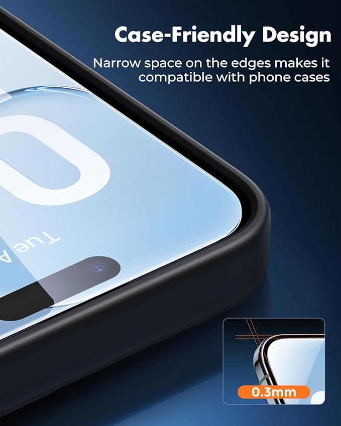 - Perfect Fit & Case Friendly: Precisely cut to perfectly match your phone’s display, with edges designed slightly smaller than the screen. This prevents interference with Face ID and the front camera, while ensuring case compatibility and avoiding edge lift or bubbling.