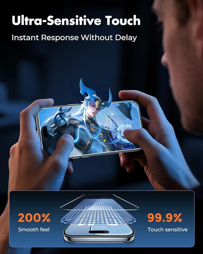 - Clarity & Sensitivity: Our ultra-thin screen protector is 0.01 inches thick, nearly invisible, and offers 99.9% clarity. Enjoy a vibrant display with silky smooth touch sensitivity for quick, natural responses.