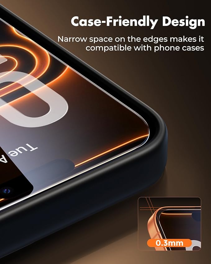 - Perfect Fit & Case Friendly: Precisely cut to perfectly match your phone’s display, with edges designed slightly smaller than the screen. This prevents interference with Face ID and the front camera, while ensuring case compatibility and avoiding edge lift or bubbling.