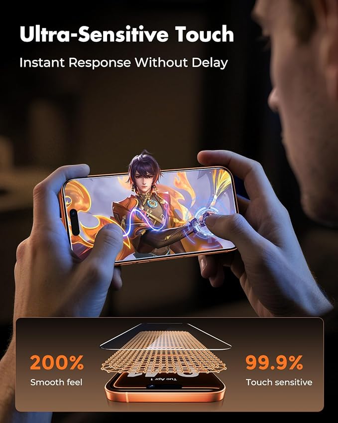- Clarity & Sensitivity: Our ultra-thin screen protector is 0.01 inches thick, nearly invisible, and offers 99.9% clarity. Enjoy a vibrant display with silky smooth touch sensitivity for quick, natural responses.