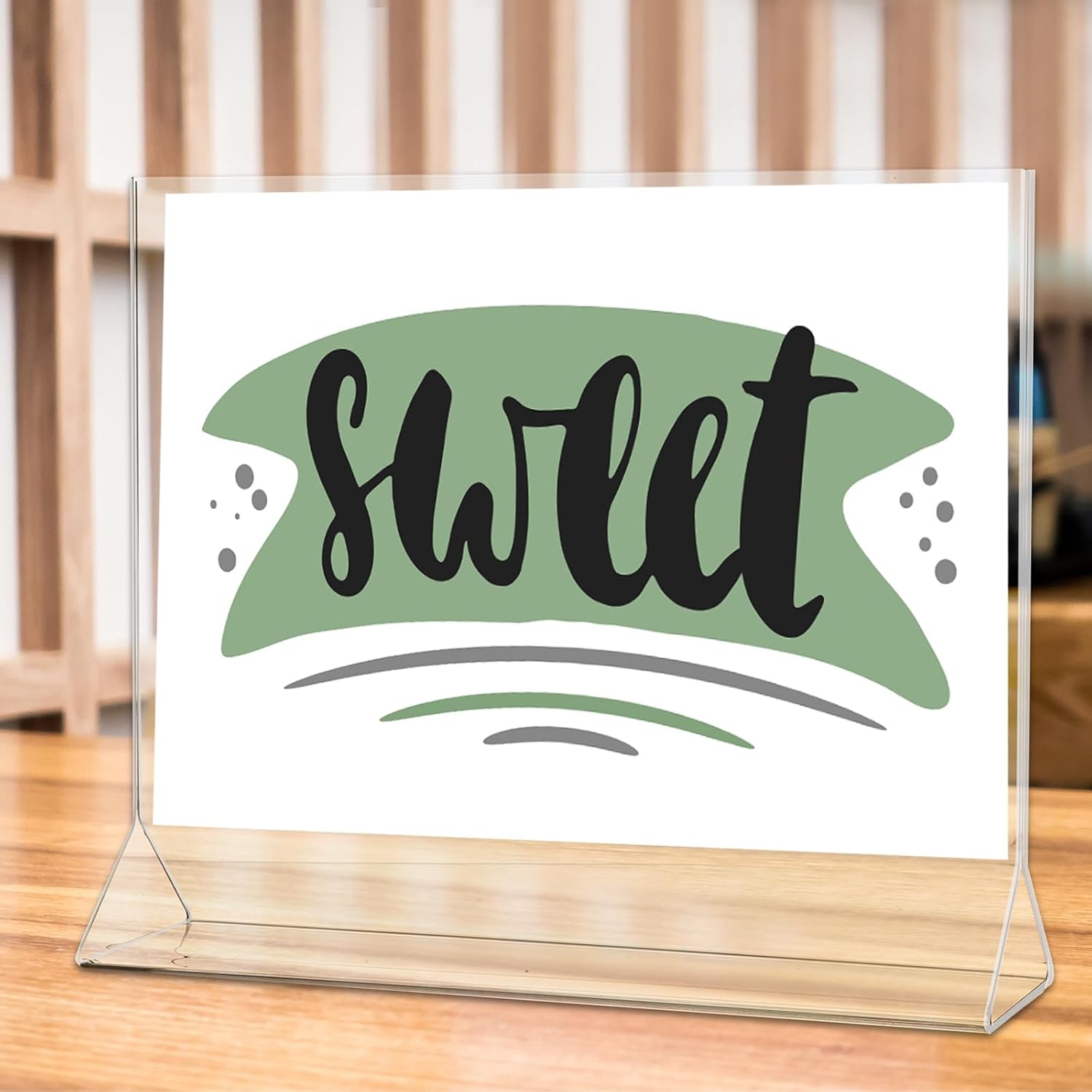 - Stable Acrylic Holder: the table card display holder are made of quality clear acrylic material, T shape design offers excellent support so that the holder can stand firmly on any flat surface, protecting content from stains or scratches, and the paper will not come out and fall off easily