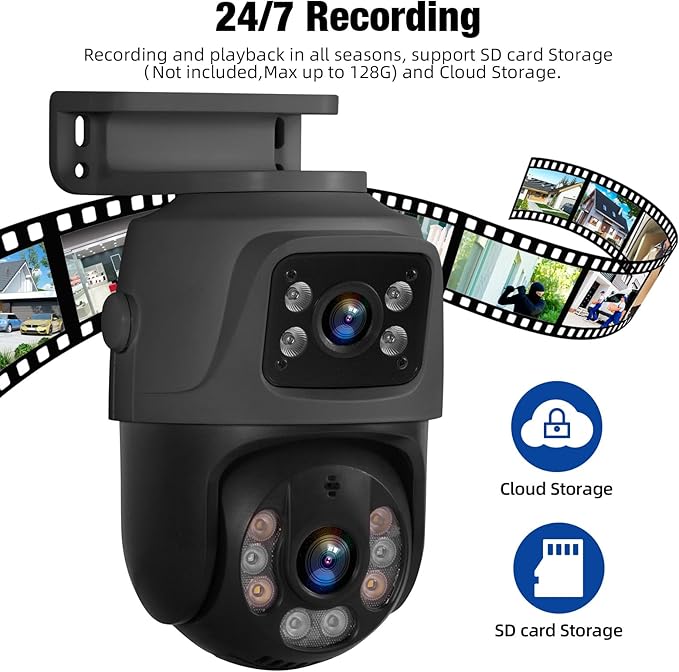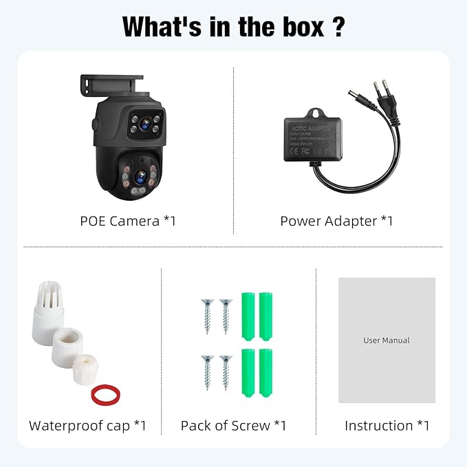 - PoE Dual Lens Security Camera & Wider 360°View – 1 fixed camera and 1 PT camera make sure take care any angle for review. When the pt camera tracking the motion, the fixed camera will stay still for more general view.One camera is all you require, making it a cost-effective choice for surveillance. 2 separate view, won't missing any details.