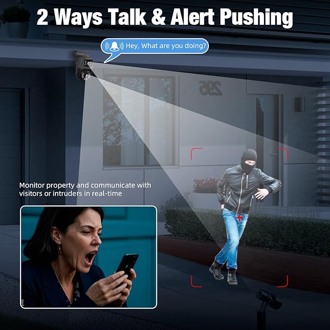 - Color Night Vision with Light Alarm & Two-Way Audio – Our surveillance & security cameras have 3 light control modes, include full color/infrared night vision/double light warning which insure you can monitor your home clearly with the home security cameras even if in darkness at night, and if there is invaded, the light alarm of the outdoor camera starts and alerts message will send to your phone, and you can talk on your phone and nvr to the strangers on the security cameras.