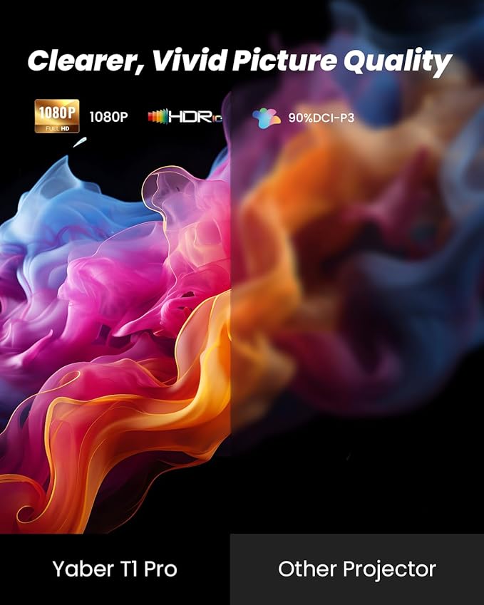 Yaber T1 Pro Mini Projector with WiFi and Bluetooth, Dolby Audio & Turbo Sonic Bass, Auto Focus & Keystone, Native 1080 FHD with HDR10, Portable Projector for Outdoor Indoor Use
