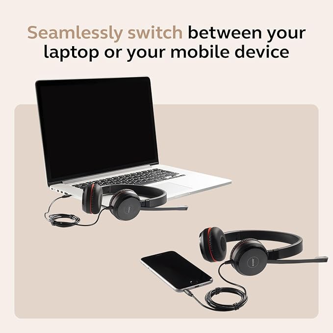 Jabra Evolve 30 II Wired Dual-Ear Headset with Mic for Work - 3.5mm Jack or USB-A/USB-C Connectivity, Computer Headset with Noise-Cancelling Microphone, Works with Online Meeting Platforms - Black