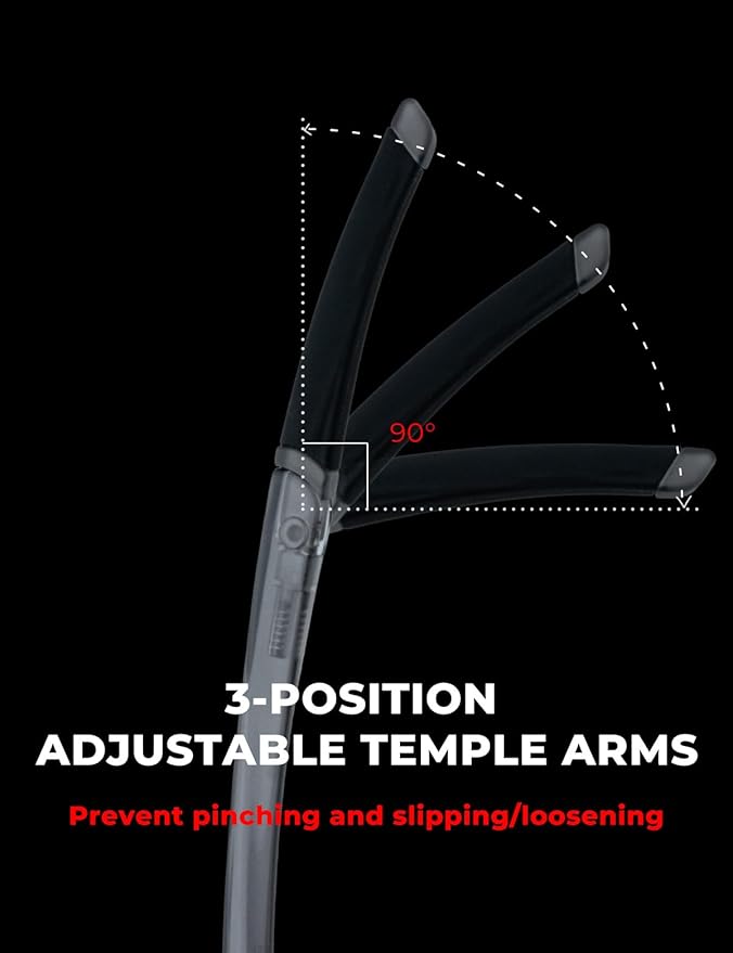 - The frames are made of ultra-lightweight anti-allergic TR material for exceptional wearing comfort, featuring adjustable cushioned nose pads. 3-position adjustable temple arms provide a secure, customized fit for lasting comfort during extended gaming or screen time.