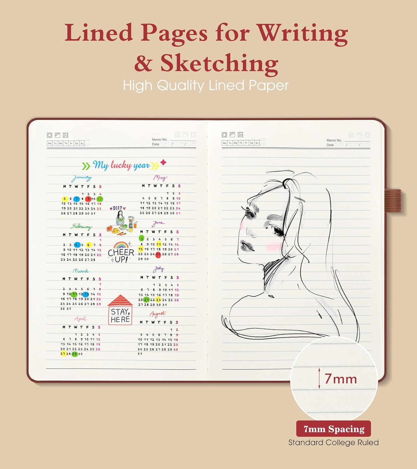 - 【180° Lay-Flat Binding for Effortless Writing】:The journal’s lay-flat design allows full-page access, making writing, reading, or note-taking comfortable for both left- and right-handed users. No more curled pages—perfect for extended writing sessions in meetings, classes, or while traveling.