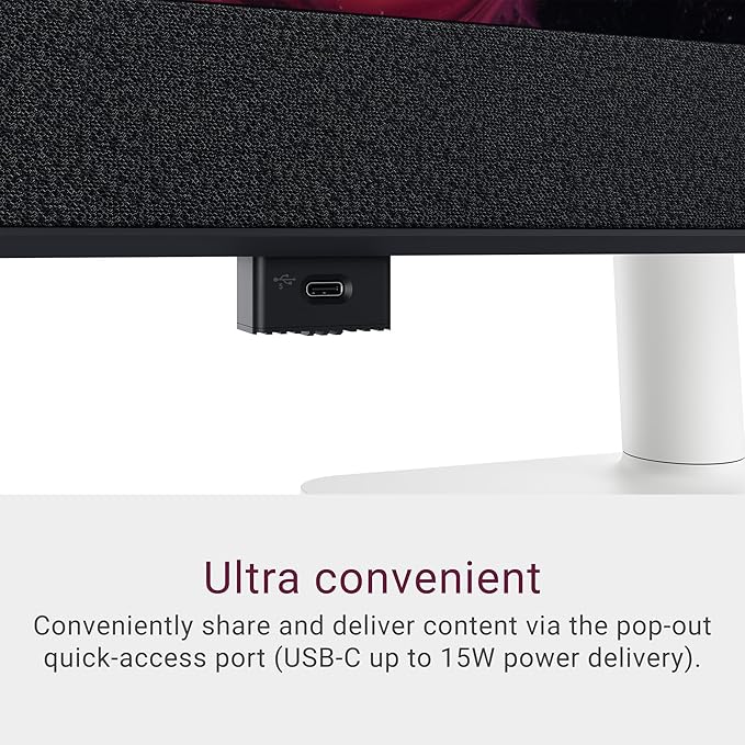 - Designed for ease of use and comfort: Enjoy a clutter-free desk setup with a single USB-C cable that supports up to 90W power delivery. Connect your accessories easily using the pop-out quick access ports, which include a USB-C with up to 15W of power.