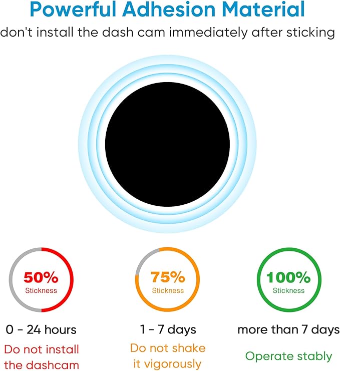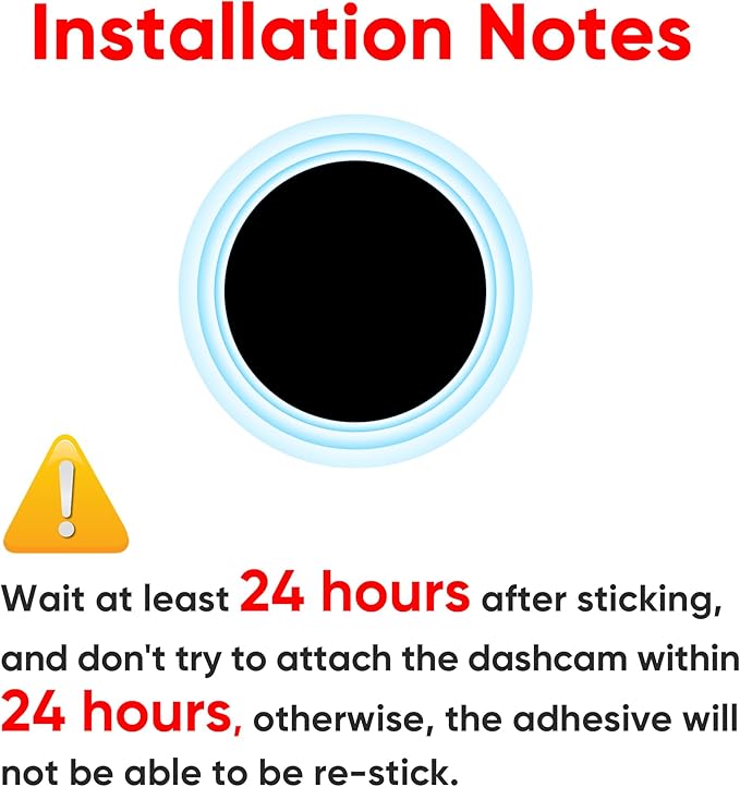 - 【Wait 24 Hours Before Use】Avoid installing the dash cam too soon.