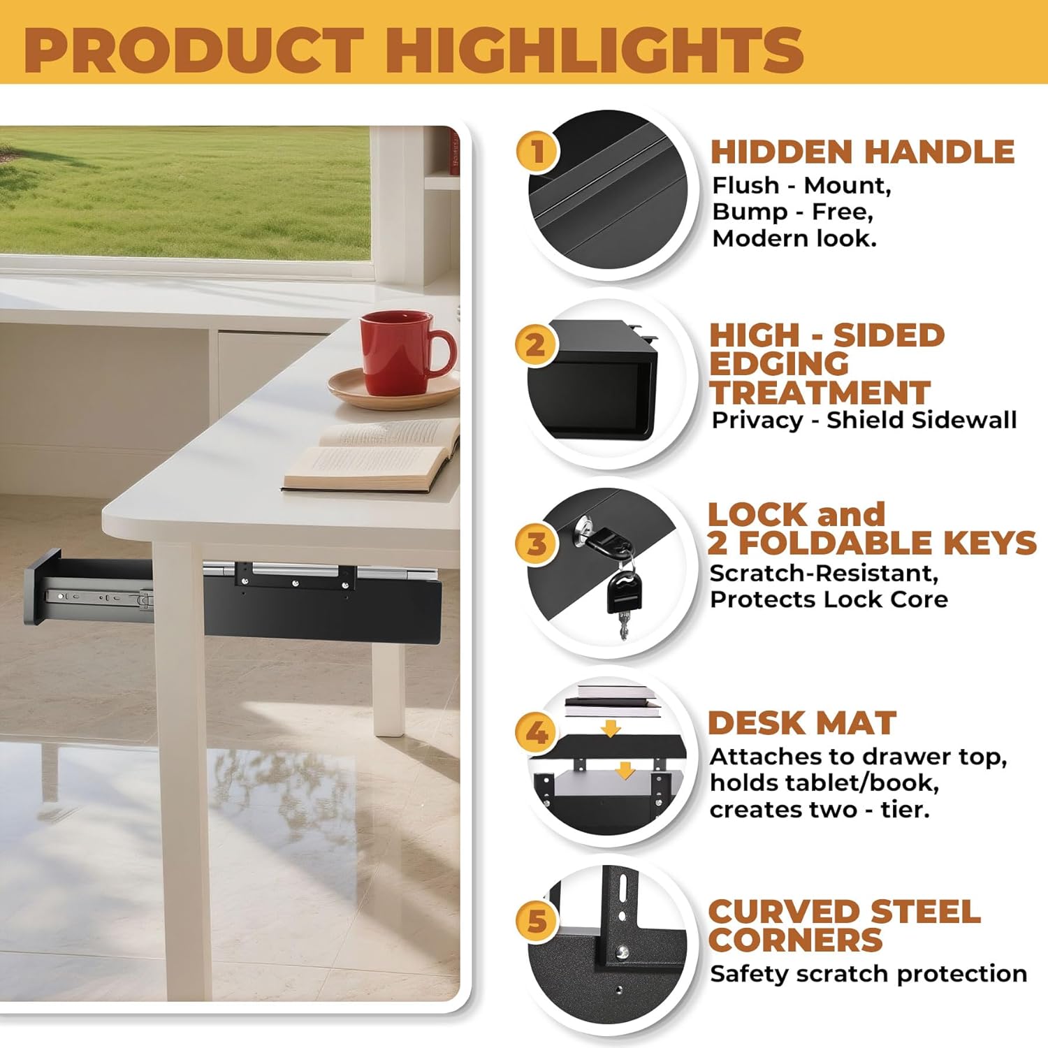 - πππππππ ππππππππ: Under desk drawer is made of premium cold steel ,high strength, good stability, strong anti-oxidation ability, ensure durability and long life. the surface matte black powder coating, which prevents scratching surface, easy to clean