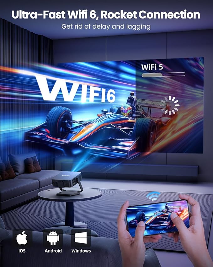 - Dual-Band WiFi & Two-Way Bluetooth, Faster and Stable: FUDONI projector with wifi and bluetooth offers a robust and versatile connectivity experience with rocket speeds, and improved audio quality with dual-band WiFi 6; Projector also supports two-way Bluetooth, audio transmission, allowing connection to mobile devices, speaker or other bluetooth equippment to enhance audio effects for home projectors anytime and anywhere.