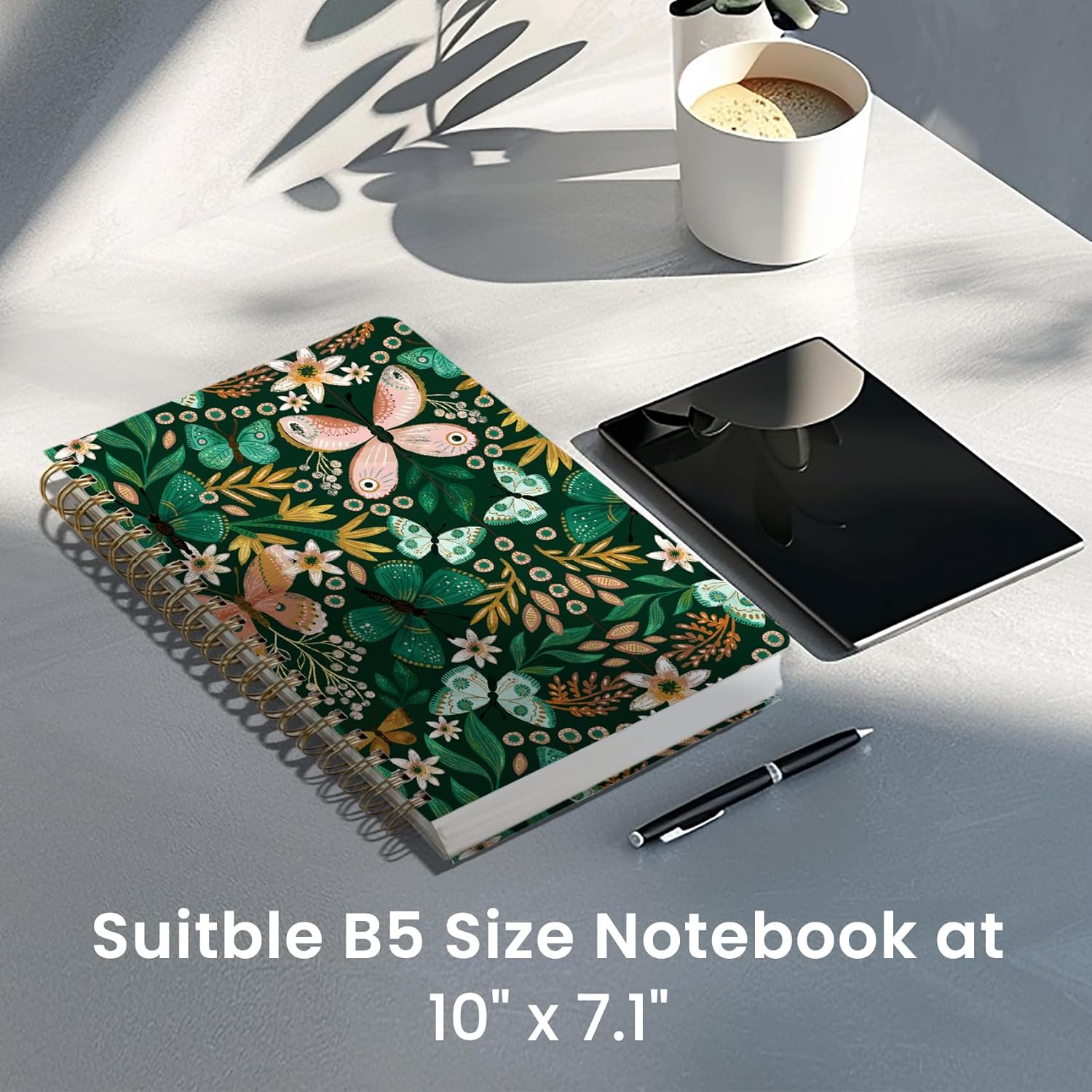 Lined Spiral Notebook Journal for Work, 300 Pages Thick B5 (7.1"x10") College Ruled Journal for Women & Writing, Hardcover Notebook for Note Taking, Perfect for Office Home School, Butterfly