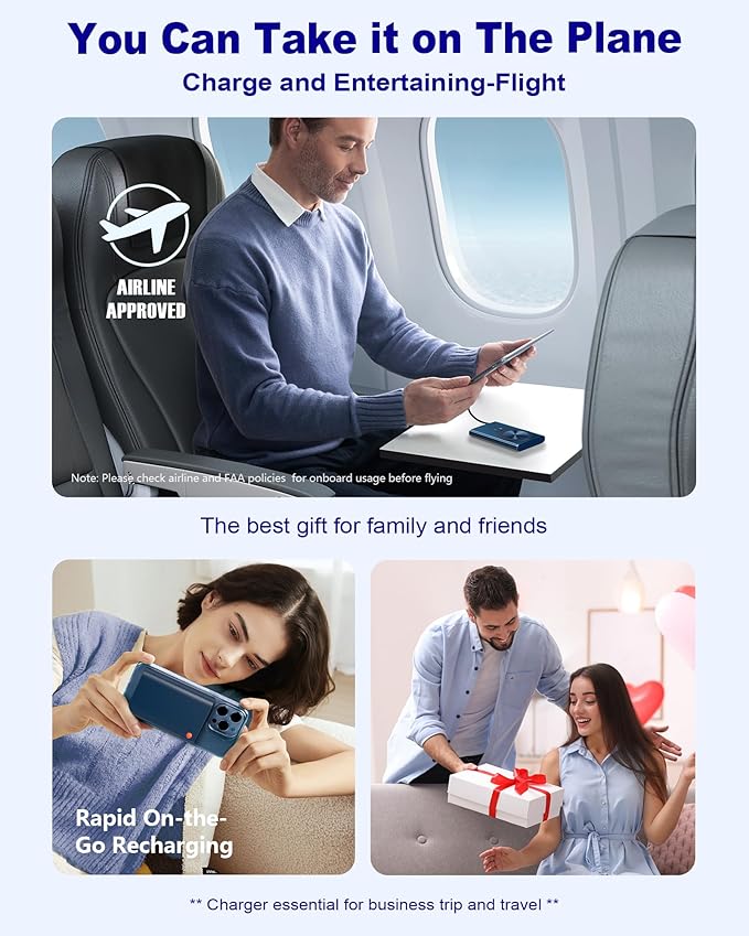 - Perfect Size for On-the-Go: This power bank measures just 4.2Γ2.7Γ0.7 inches and weighs only 0.43lbsβlighter than most wallets. The ultra-slim design effortlessly fits in pockets or bags, making it the perfect charging partner for business trips, daily commutes, and travel adventures.