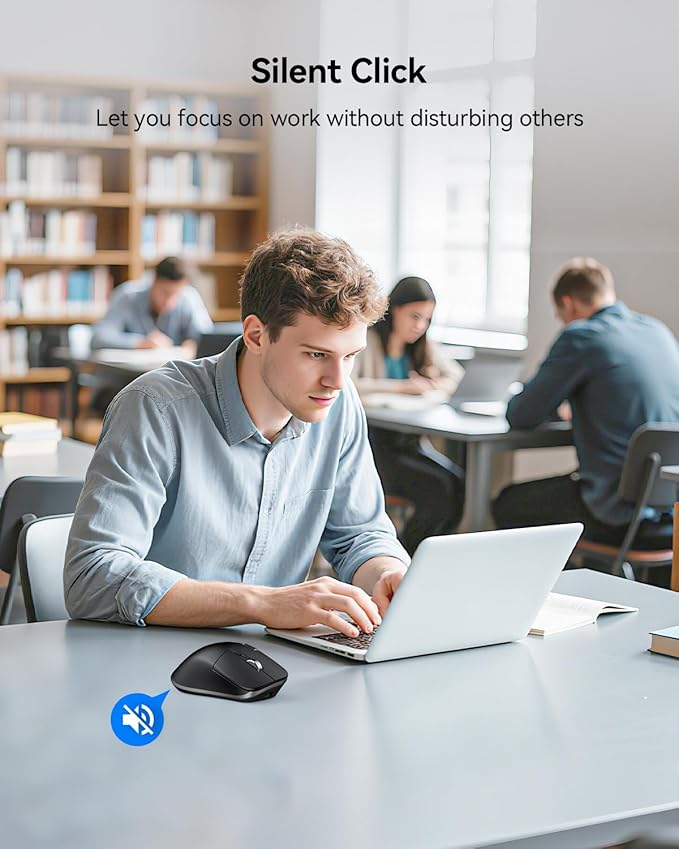 - Quiet Clicks, Focused Work: Silent clicks, no disturbance—perfect for offices, libraries, or focused work. This wireless silent mouse delivers precise, comfortable control, free from loud clicking noise.