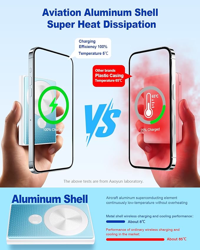 - Certified & Safe Charging: This wireless power bank meets FCC/CE/ROHS/PSE safety standards with 10-layer protection. Features smart temperature control and gentle charging that keeps your devices safe while delivering full power. No overcharging, no damage - just reliable charging every time.