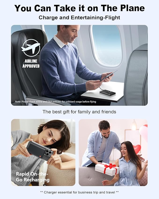- Perfect Size for On‑the‑Go: Measuring just 4.2 × 2.7 × 0.7 inches and 0.43 lbs—lighter than most wallets—this slim power bank slips easily into pockets or bags for business trips, commutes, and travel. Built with real, durable materials—not weight shaved at the expense of quality—so you get portability without compromise.