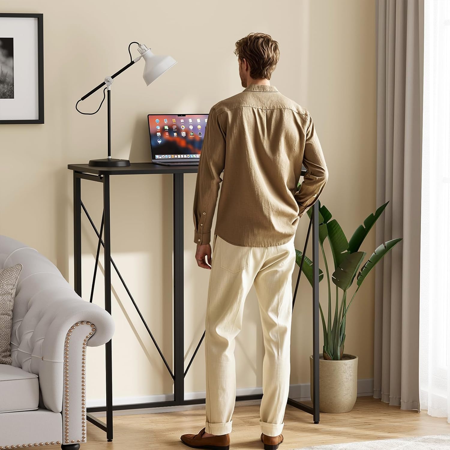 - Wide Application: This versatile foldable standing desk fits seamlessly into home offices, bedrooms, classrooms, and studios. Ideal for remote work, studying, gaming, or crafting, it meets a wide range of needs. Foldable and sturdy, it's easy to move and adapts to different environments with ease and efficiency.