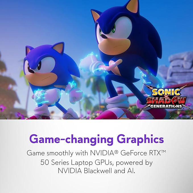 - Game changing graphics: Step into the future of gaming and creation with NVIDIA GeForce RTX 50 Series Laptop GPUs, powered by NVIDIA Blackwell and AI.