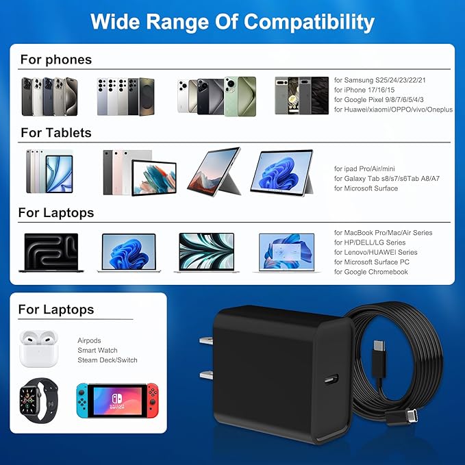 - 【Wide Range of Compatibility for Type C Charger 】:Use the official USB-C cable 20W USB C wall charger to access fast-charging for iPhone 17/17 Pro/17 Pro Max/16/16 Plus/16 Pro/16 Pro Max/iPhone 15/15 Plus/15 Pro/15 Pro Max/ 2021/2020/2018 i Pad Pro 12.9/11 inch,i Pad Air 4, Mac Book Air 13 inch, Mac Book 12 inch, Gen 4/3, i Pad Pro 11 Gen 2/1, i Pad Air 4, Google Pixel 4/ 4 XL / 3a XL / 3 / XL / 2, Samsung Galaxy S8 S9 S10 S20 Plus, Note 10, LG and more.