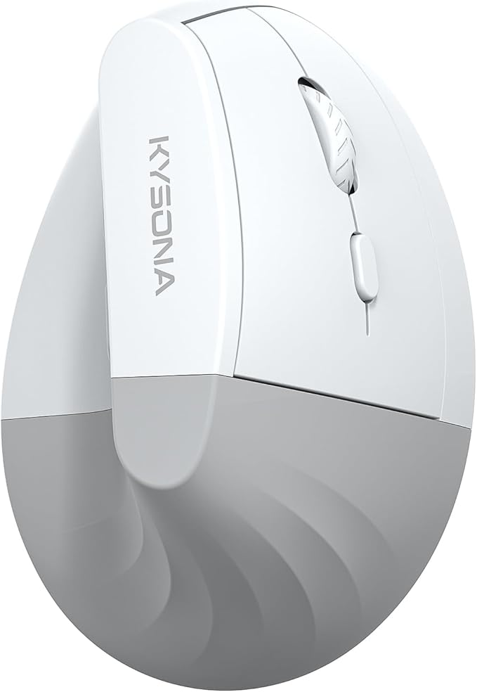 EM18 Wireless Ergonomic Vertical Mouse, Ergo Design, Bluetooth Cordless Mouse, Silent Click, 5-Level Adjustable DPI, Carpal Tunnel Mice for Computer, PC, Mac, Laptop, White