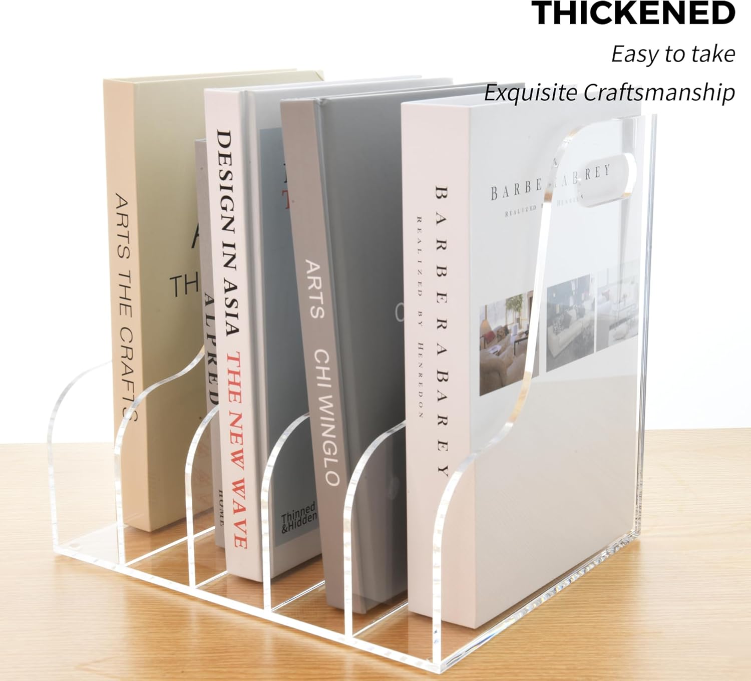 5 Vertical Compartments File Holder, Clear Acrylic Desk Organizer and Storage Bins Holding for Magazines, Binders, Notebooks, Envelopes, Multi-purpose Document Organizer for Home Office