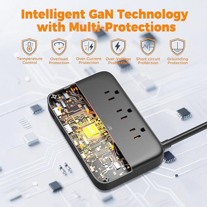 - [What You Get] - TESSAN 130W 8-in-1 GaN USB C Charging Station with 5 FT (1.5 m) extension cord, 1 x Instructions, and 24 hours friendly customer service.
