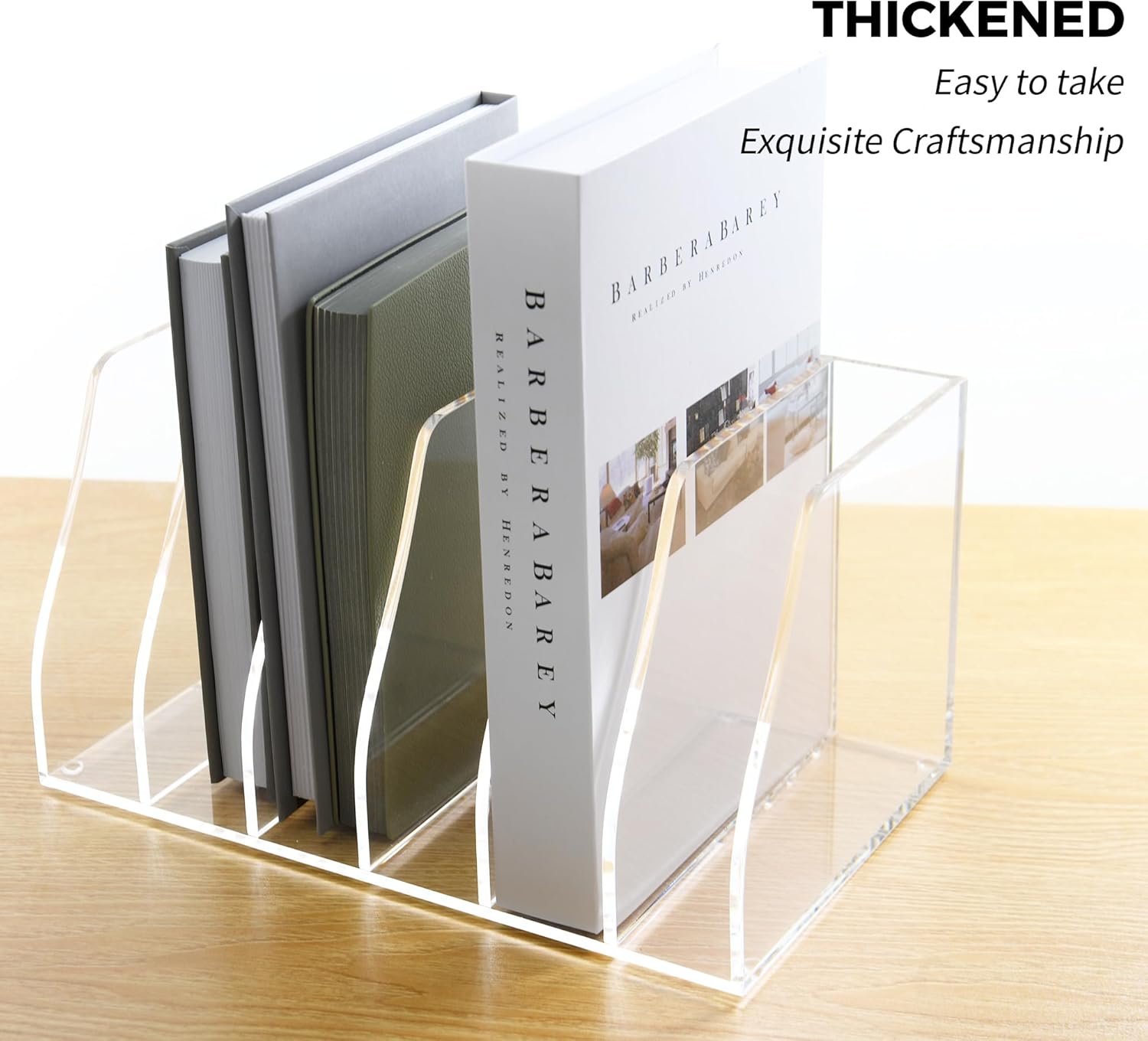 - Ultra-Durable Design with Reinforced Build: Unlike flimsy plastic alternatives, our acrylic organizer is fully thickened (edges and panels reinforced) and precision-polished to eliminate sharpness—safe to handle while resisting chips and scratches. The bottom is fitted with non-slip pads to prevent sliding, ensuring stability even when fully loaded with heavy books or thick files.
