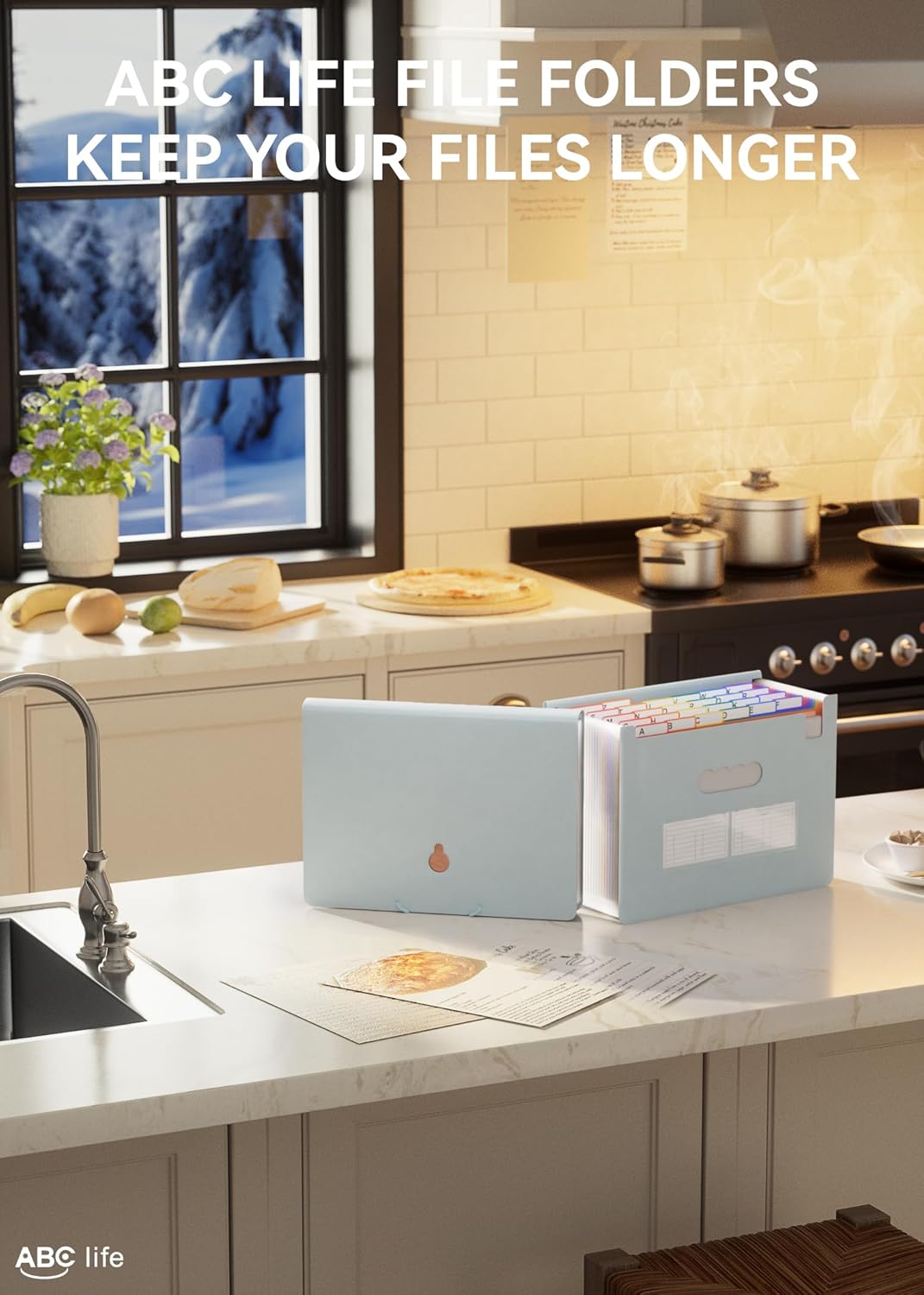 - 【26 Expanding File Folder】ABC life pockets accordian file organizer suitable for filing tax and storing important family documents. Product size is 13 "x 9.4"x 28", top and bottom are both expandable, For letter/A4 size files.