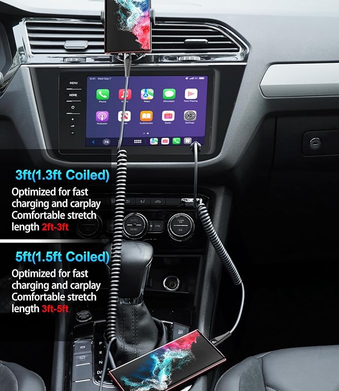 - Elastic Coiled USB C Cable Made for Car: The USB Type-C cable is designed with stretchable, no tangle, no knot, and does not take up space. This coiled USB C charging cable is made of upgraded high quality PU material, which is flexible, easy to stretch, effortless, quick to rebound and not easily deformed.