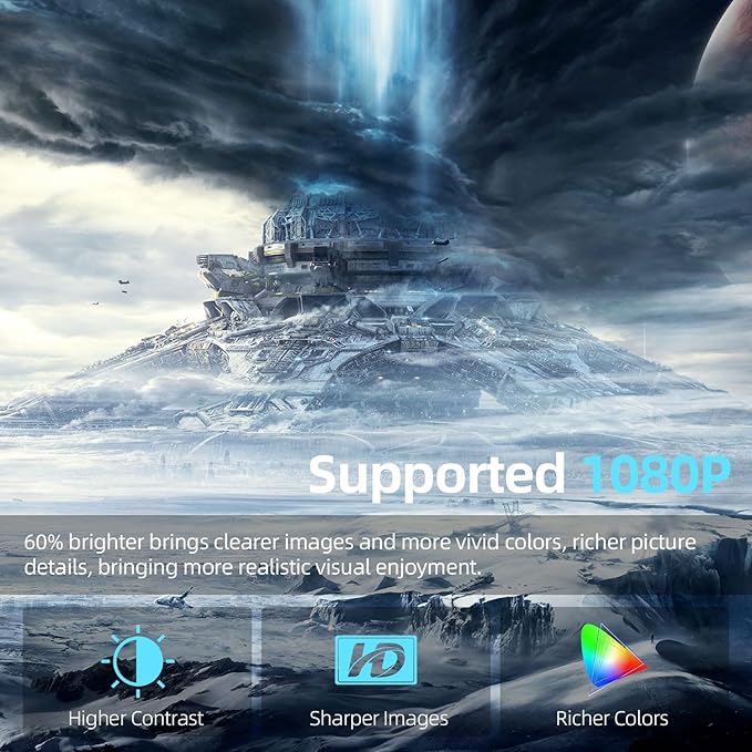 - 【Big Screen Magic, Perfect for Gifting】 Turn any wall into a 30”-200” cinema--This projector turns ordinary nights into memories:Kid’s cartoon nights with a giant screen, Romantic outdoor movies under the stars, Super Bowl parties with a 100” display. With WiFi added, this home theater projector is the ultimate gift for movie lovers, gamers, and adventurers of all ages.