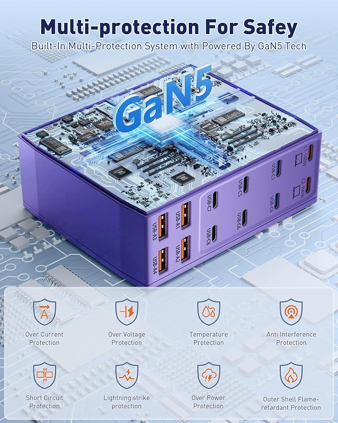 - 【Universal Compatibility】Our USB C charging station is equipped with 2*100W and 2*65W fast charging ports, which can charge 3 or more laptops at the same time. Compatible with smartphones, tablets and laptops, suitable for MacBook Pro/Air, Dell XPS, iPad Pro, Phone 16/16 Pro Max, Phone 15 Pro Max, Phone 14/13 Pro/12 Pro Max, iWatch, AirPods, Surface Pro, Galaxy S24 Ultra, Switch, Steam Deck, Google Pixel and many other devices.