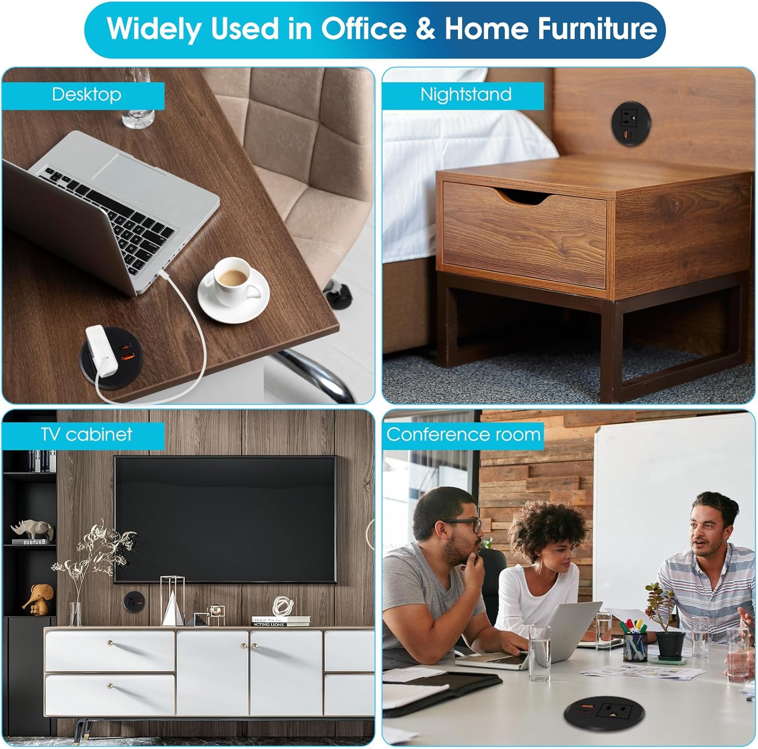 - COMPACT POWER GROMMET: Flush-mount power grommet integrates seamlessly into furniture—keeping desks and conference tables clutter-free while charging multiple devices neatly