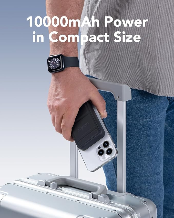 All-in-one 10000mAh MagSafe Compatible Battery Pack Portable Power Bank with Foldable Stand Magnetic Power Bank, Compatible with iPhone 17/16/15/14/13/12, Apple Watch and AirPods