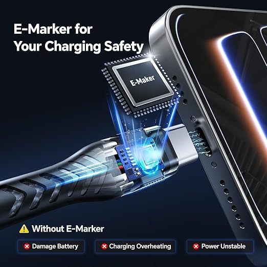 - 【Certified Safety & 10FT Length】Rest easy with our certified-safe USB-C cable, designed for worry-free daily use. Featuring an intelligent E-Maker Chip that provides Overheat Protection and Voltage Protection, it actively contributes to long-term Battery Care for your devices. This 2-pack of 10-foot cables offers extended reach, allowing you to charge comfortably on sofas, in bed, or even in the back seat of a car—Power Safe, Peace of Mind