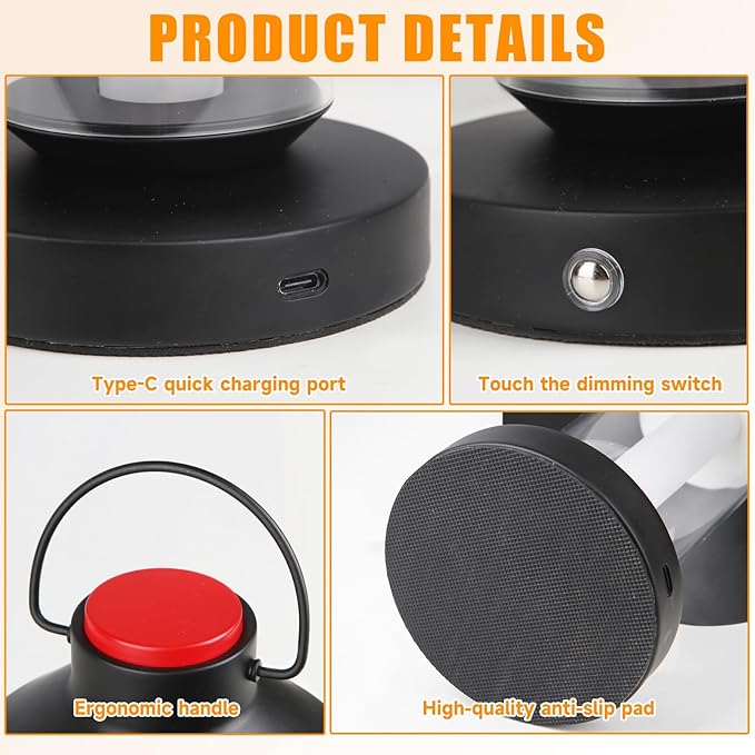- Adjustable Brightness & Touch Control: Easy to dim and turn on and off just by touching the top of the base. Craft the perfect mood with 360Β° dimmable illumination. Choose a soft, warm glow for intimate evenings or crank up the brightness for reading maps, cooking, or outdoor tasks. The warm, yellowish light is gentle on the eyes, creating a welcoming atmosphere wherever you go