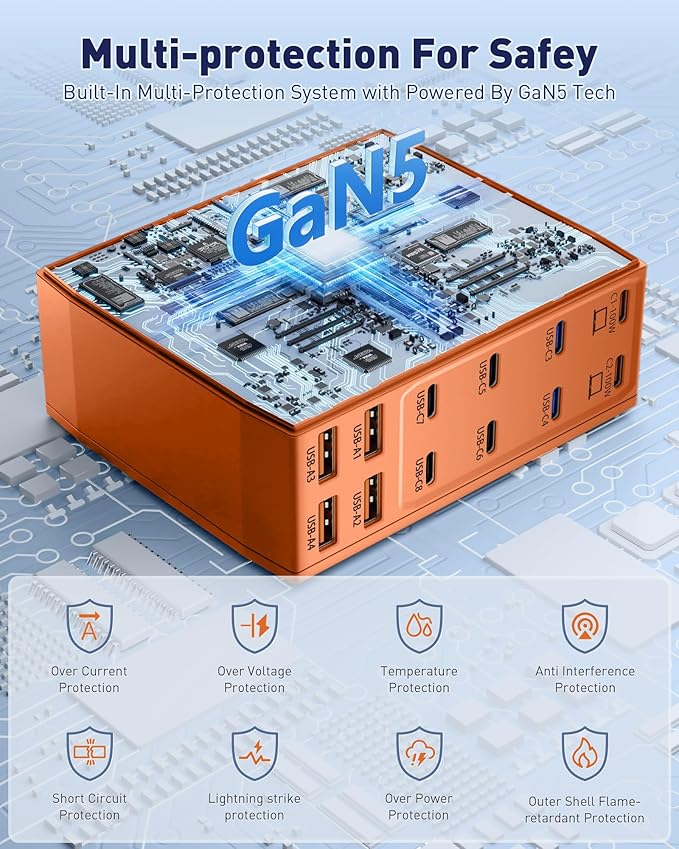 - 【Universal Compatibility】Our USB C charging station is equipped with 2*100W and 2*65W fast charging ports, which can charge 3 or more laptops at the same time. Compatible with smartphones, tablets and laptops, suitable for MacBook Pro/Air, Dell XPS, iPad Pro, Phone 16/16 Pro Max, Phone 15 Pro Max, Phone 14/13 Pro/12 Pro Max, iWatch, AirPods, Surface Pro, Galaxy S24 Ultra, Switch, Steam Deck, Google Pixel and many other devices.
