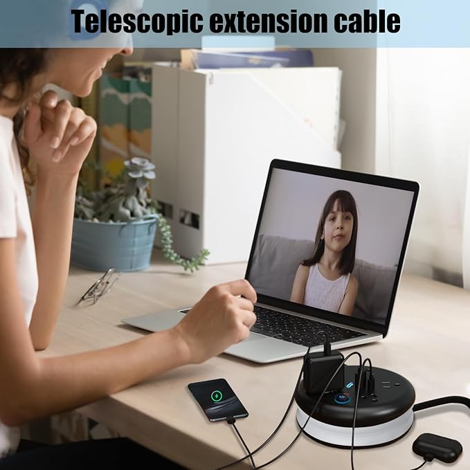 - Retractable Power Strip: The 10 ft retractable power strip can adjust the length of the power cord according to actual needs, optimize space usage, When not in use, it can be completely retracted to a smaller size, making it easy to carry and store, and avoid cable clutter