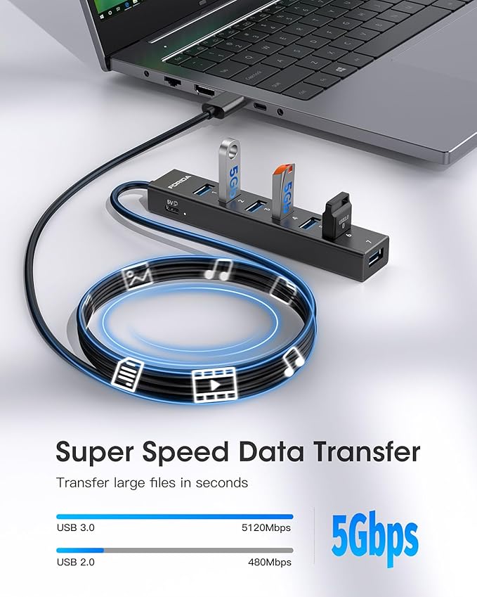 - 【5Gbps Data Transfer Speed】This usb splitter 3.0 syncs data at blazing speeds up to 5Gbps, which is more than 10 times faster than USB 2.0, fast enough to transfer an HD movie in seconds.