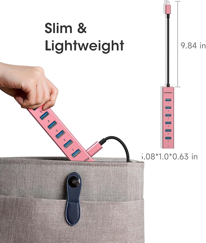 FORIDA USB C Hub-8 Port USB HUB with 7 USB3.0 Data Ports,Aluminum Alloy USBC Splitter with Type C 5V/3A Power Port Compatible with MacBook,iPad,Surface Pro,Laptop,PC (Rose Gold,USB C-9.8in)