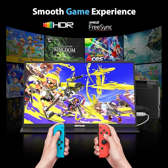 - 4K 8-bit UHD Visuals - With HotYeah 15.6'' true 4K IPS portable monitor, you can enjoy realistic 100% Adobe RGB color gamut, 350nits brightness, 1500:1 contrast ratio, 16.7M 8-bit color depth, and 6800K color temp, giving you a vivid and detailed picture quality from work to games to stream videos. HDR mode provides superior color accuracy and more vibrant colors. Also, FreeSync tech automatically eliminates screen tearing and stuttering, ensuring the best gamer experience.