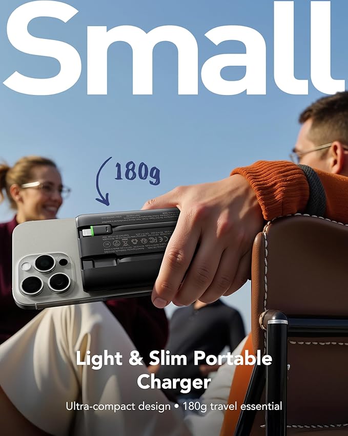 - 【20% lighter, Still 10000mAh】 Weighing only 0.4 lb, it's significantly lighter than comparable models while delivering a full 10000mAh capacity. Provides up to 1.7 charges for iPhone 16 and over 1.5 charges for a Galaxy S25—the ideal balance of portable size and reliable power.
