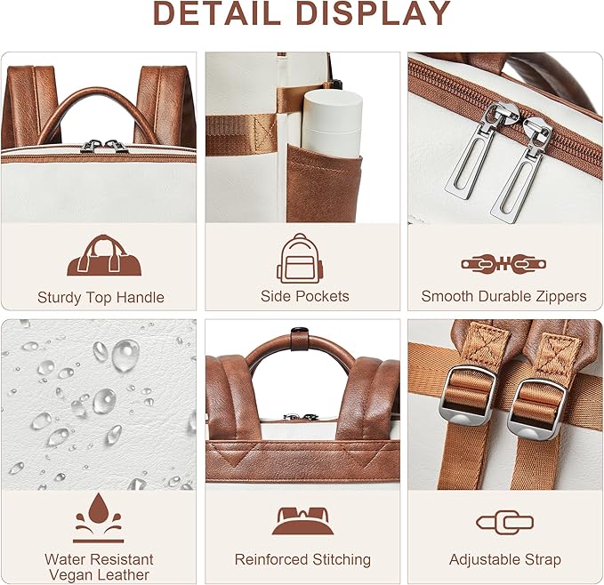- Leather Backpack for Women: This womens backpack for work is made of high-quality PU vegan leather that can easily withstand rain and snow.The ergonomic shoulder straps with adjustable metal buckles effectively reduce strain on the shoulders,and the women laptop backpack with luggage strap to makes your traveling more convenient.This backpack laptop is an ideal choice for people who like short trips