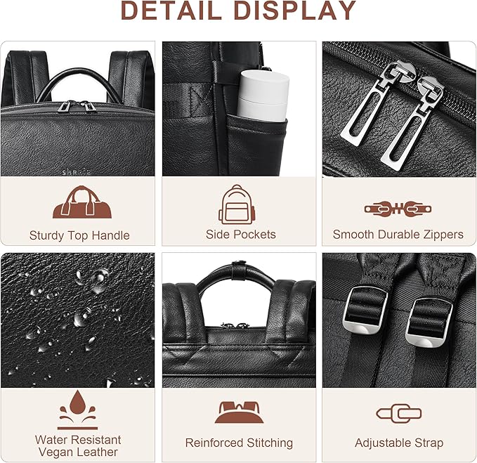 - Leather Backpack for Women: This womens backpack for work is made of high-quality PU vegan leather that can easily withstand rain and snow.The ergonomic shoulder straps with adjustable metal buckles effectively reduce strain on the shoulders,and the women laptop backpack with luggage strap to makes your traveling more convenient.This backpack laptop is an ideal choice for people who like short trips