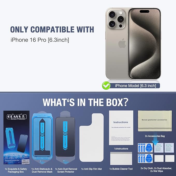 - Sensitive Touch & Seamless Compatibility: Enjoy a fully compatible fit with your iPhone 16 Pro, offering no-lag touch sensitivity, full case friendliness, and a smooth, seamless install for long-lasting screen protection