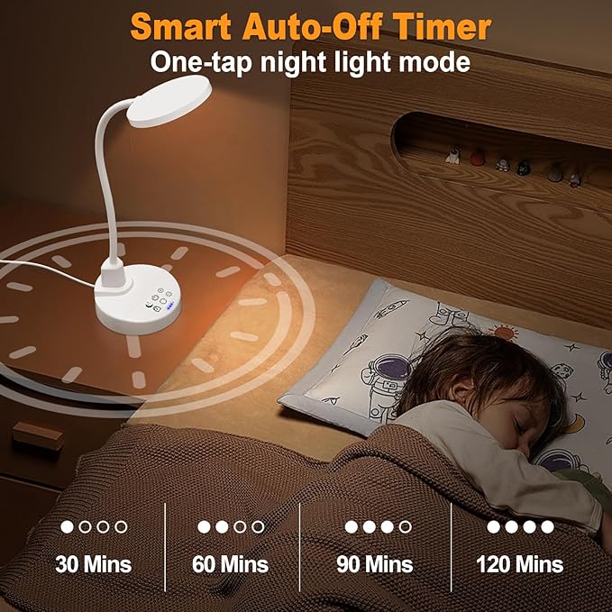 - Energy-Saving Timer & Night Light Mode – Set auto-off for 30/60/90/120 minutes plus one-tap night light mode for the lowest brightness. Perfect for bedtime reading, study sessions, or as a gentle nightstand lamp—saves energy and extends lamp life effortlessly.