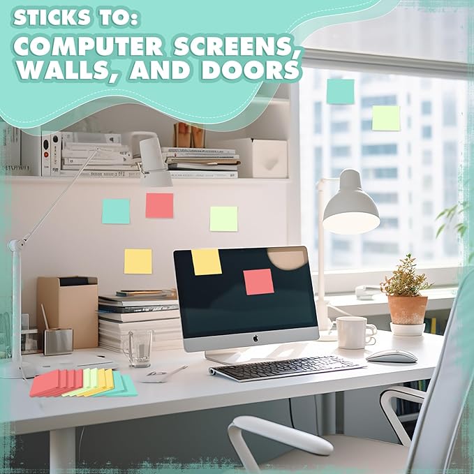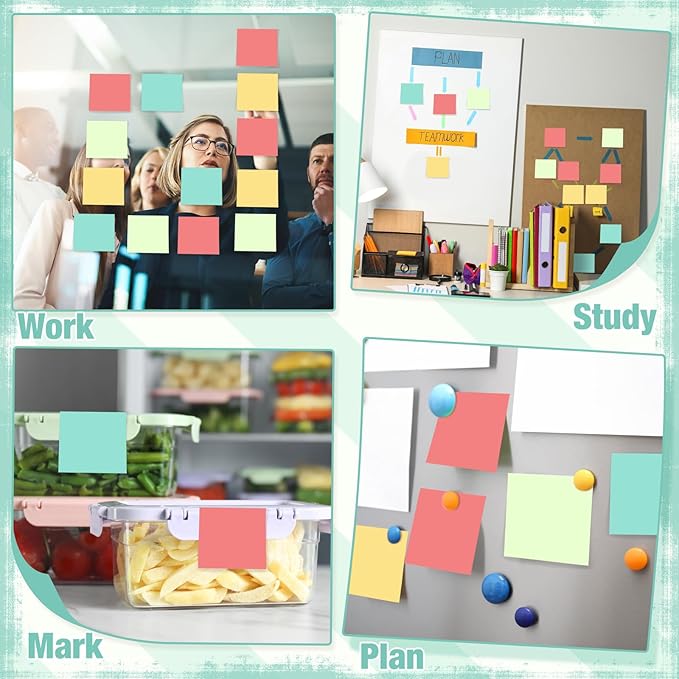 - Practical and Efficient: the sticky notes come in 4 colors, 6 packs per color, which is an ideal way for you to distinguish tasks, prioritize tasks, or highlight key information; Using these mini sticky notes, you can ensure that tasks are clear and easy to understand, thereby improving work efficiency and creating a vibrant and visually impactful workspace