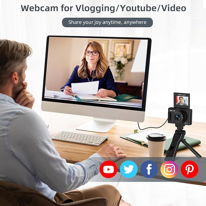 - 【4K Video & 180° Flip screen】 The Video camera supports 4K video recording, providing smooth, hight-quality video with autofocus to keep your shots clear. The 3-inch 180° flip screen simplifies shooting, especially for selfies and vlogs, with easy-to-understand menu controls. You can quickly adjust settings different modes and shooting angles, making it ideal for travel photography and casual everyday use