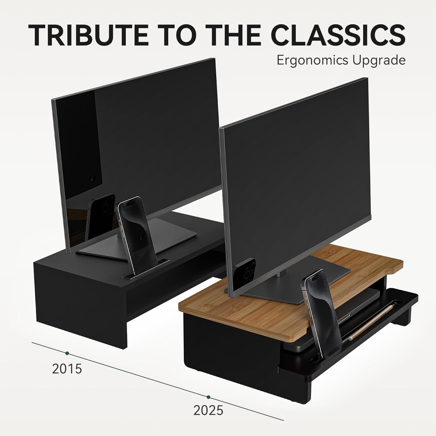 Monitor Stand Monitor Stand Riser for Desk,Wood Desk Shelf Storage Organizer with Phone Tablet Holder (16.5 Inch, Black & Dark Bamboo)
